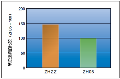 ZHZZ系列与以往系列相比,在较高的进刀速度下才会发生破损,可见ZHZZ系列不易发生破损。