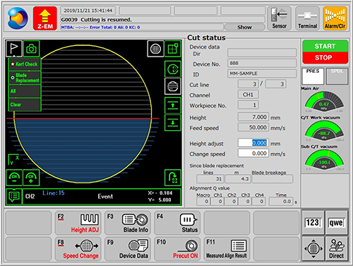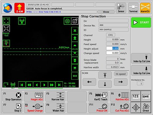 采用了高性能的MCU来提升软件运作速度及操作反应速度,X,Y,Z轴全部采用伺服电机、以提高轴的速度和生产效率。标准配置的PC ,通过选配功能可对应通信控制系统。和以往机种相同,标准配置的自动校准,自动对焦,自动检测切割槽等影像识别系统,可以最大程度地减少操作员的工作时间。