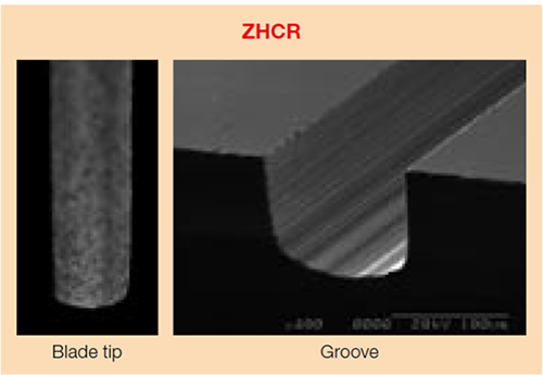 These images show that how quality deterioration happens when the tip shape of a thick blade collapses. The ZHCR Series has properties that maintain a functional blade tip shape.