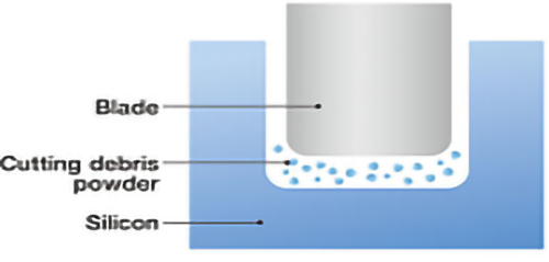 For relatively thick blades in excess of 60 µm, the blade tip midsection may suffer wear as the number of cut lines increase. This blade tip shape collapse causes quality deterioration such as widening of the kerf and sporadic chipping. The ZHCR series restrains the collapse of the blade tip shape and realizes stable processing without deterioration using a special blade structure based on unique technology. The ZHCR series proves its worth in the following processes where blades tip shape collapse easily.