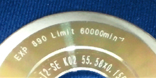 The expiration date is displayed on DISCO’s precision processing tools as shown below.The expiration date (of your product) can be also found using the page of "Inspection Sheet Search For Precision Processing Tools" (except for some products).